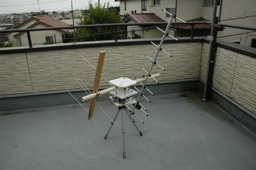 衛星追跡用のアンテナローテーター、やはりRCサーボでは無理なところもあり、もうちょっと本格的なものを製作。いろいろと試行錯誤中。 結果としてこんなかんじ、144Mhz/435Mhzのアンテナをそれぞれの取り付けて、全体を三脚に載せて運用できそうだ。 架台…