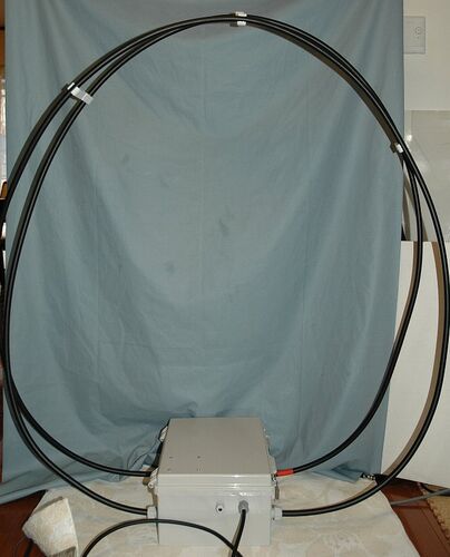 コア給電の本棚 MLA(マグネチックループアンテナ)が比較的うまく行ったので、このような Desktop タイプの MLA を製作実験中。 ループは本棚 MLA と同じく 10C の同軸ケーブルを使いループ長約 3m × 2 、直径約90cm 下側の箱にはバリコン、コアなど同調機…