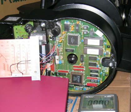写真のように放熱板を付けたら、それなりに動くようになった。アルミ板をさわるとほんのり暖かい。連続運転しても大丈夫である。赤道儀モードで1時間ばかり運転したところ、目盛環で1H動くことが確認されたので、追尾もしているようだ。