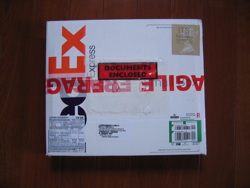 梱包の箱が Fedex となっているので、向こうが発送したのは郵便ではなかったのか、と思ったが、これは箱だけで、しっかりと郵便で届いた。